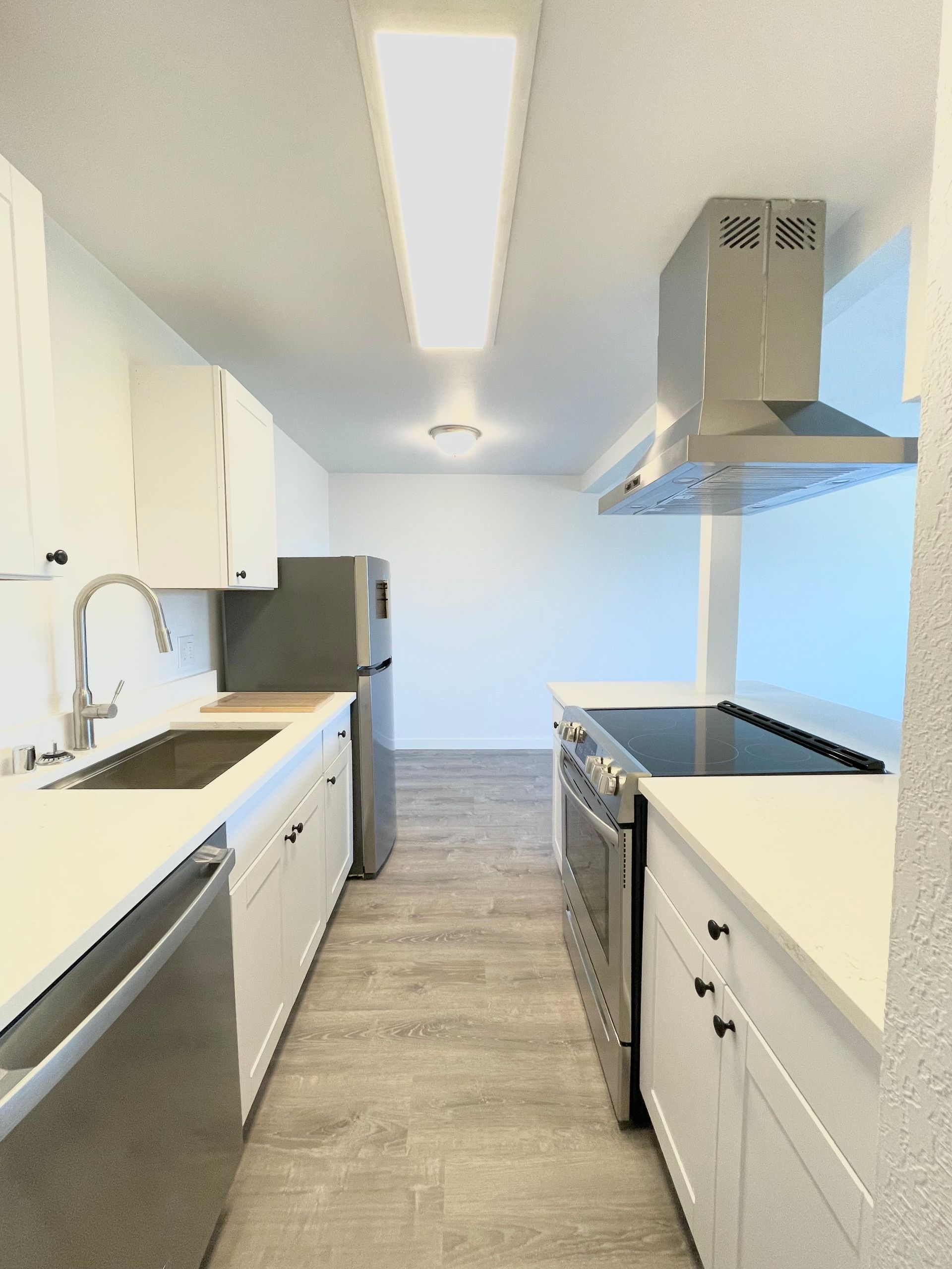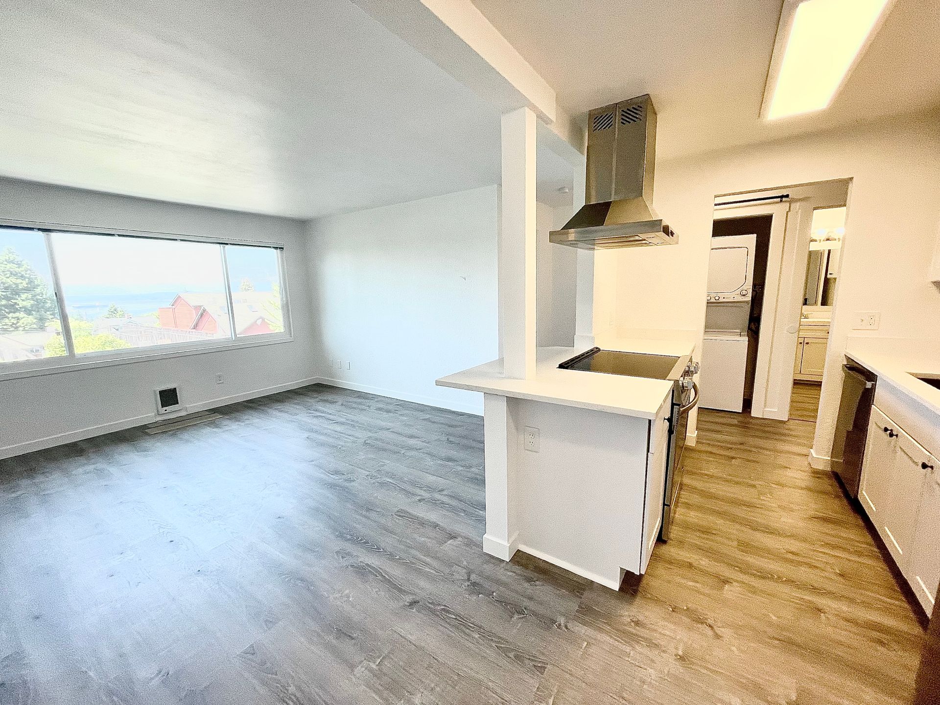 This 17 unit West Seattle apartment building was built in 1959 and has 2 325sf studios, 12 630sf 1BR units, 2 850sf 1BR+Den units and 1 1,040sf 2BR/1.5BA unit. As of 2nd quarter of 2023, we have 17 units completely demoed, with sixteen (16) units 100% renovated and the final unit set to deliver by the end of Q2 ’23. Our 5220 West Seattle remodels include all new luxury vinyl plank flooring, new shaker kitchen cabinets, quartz countertops, removal of popcorn ceilings, full paint of the unit, new interior doors, new window & door trim, new light fixtures, all new stainless steel kitchen appliances, new bathtubs/surrounds, and bathroom fixtures. We were able to install washer/dryers in each of the units that have been delivered by Saltchuck Construction. Common area improvements have included adding security astragals at all exterior doors, new flooring (carpet tile) throughout the building common areas, new paint, LED lighting, window coverings and other touch-ups. Perhaps most importantly, we re-routed the 1st floor lobby entrance to now be connected to the entire first floor, creating a logical pathway from one side of the property to the other.